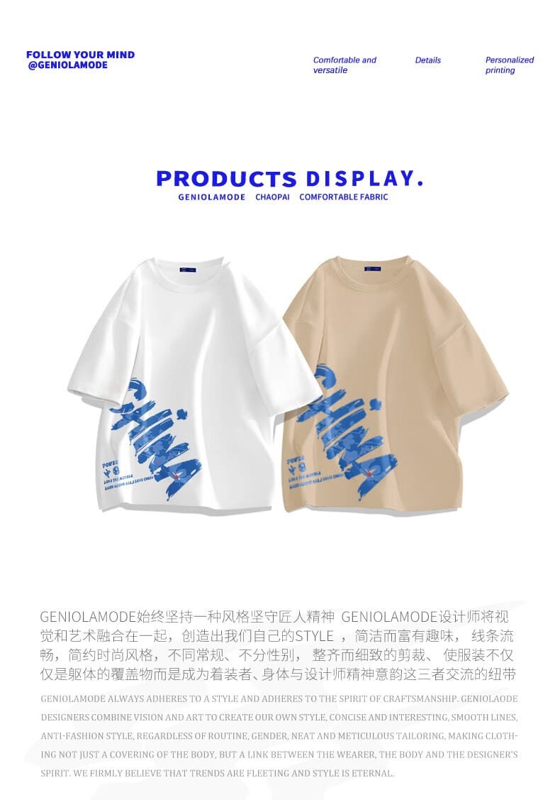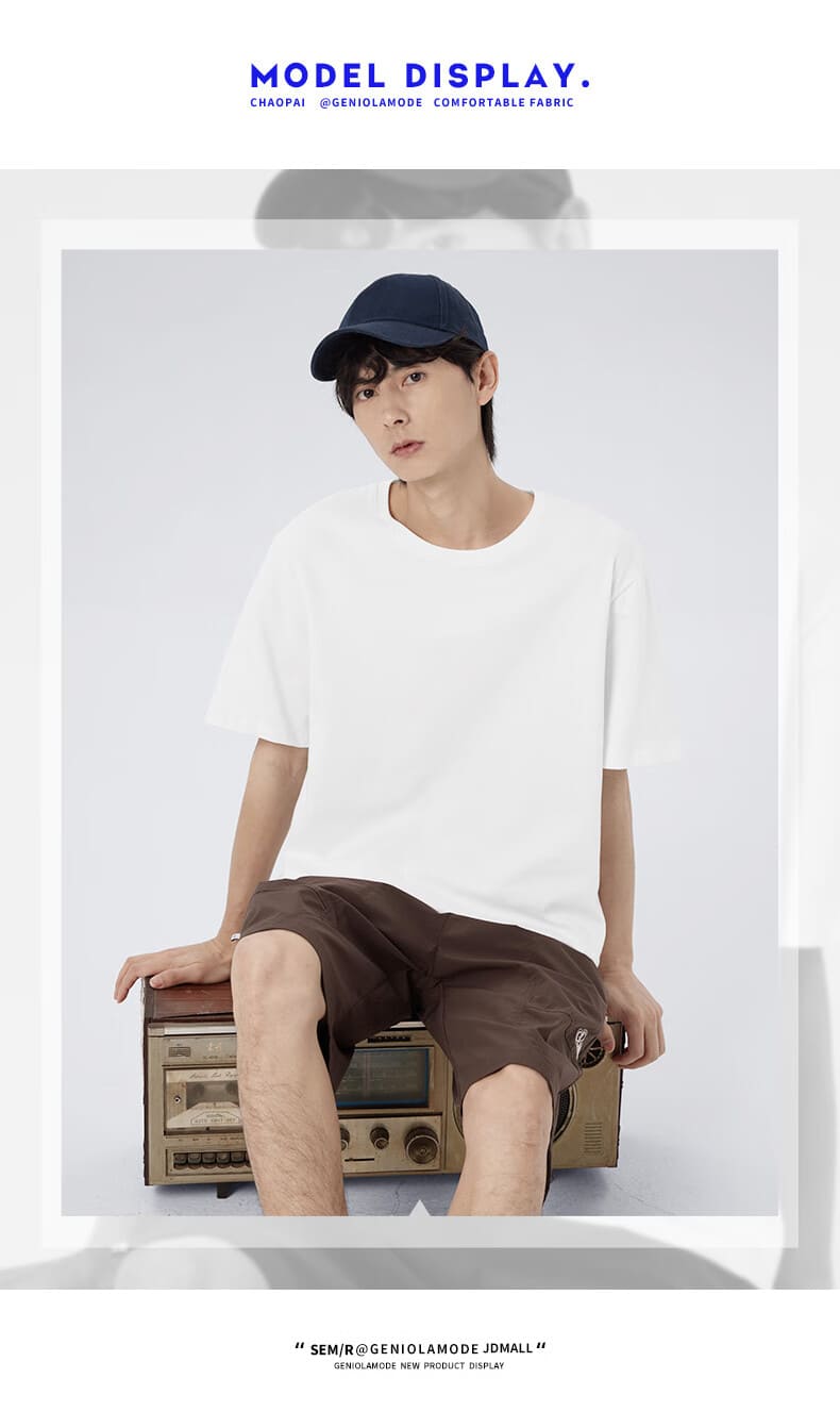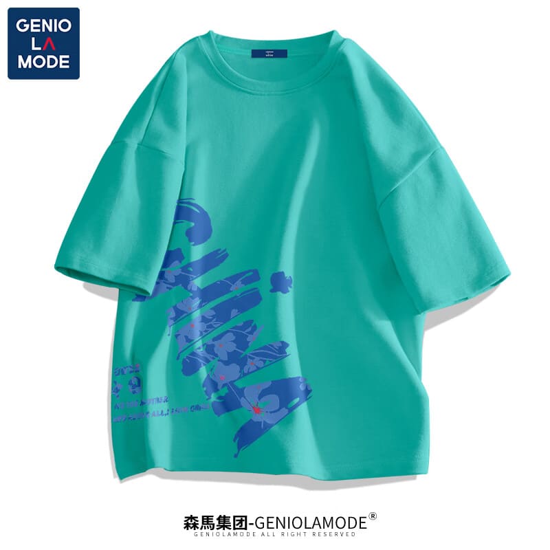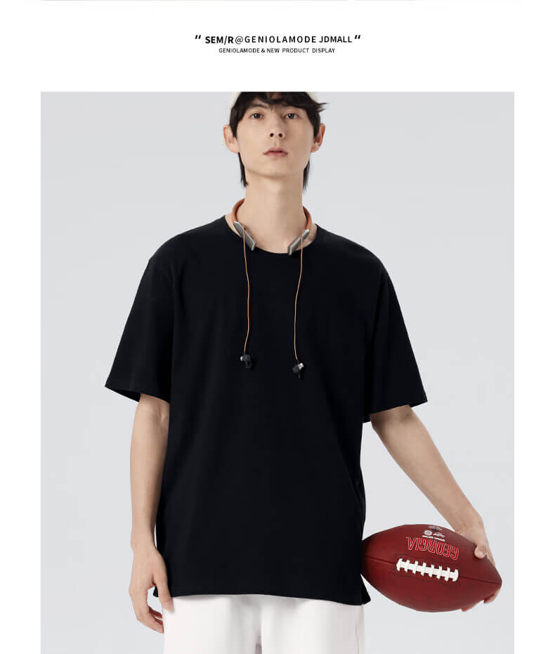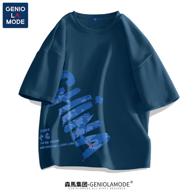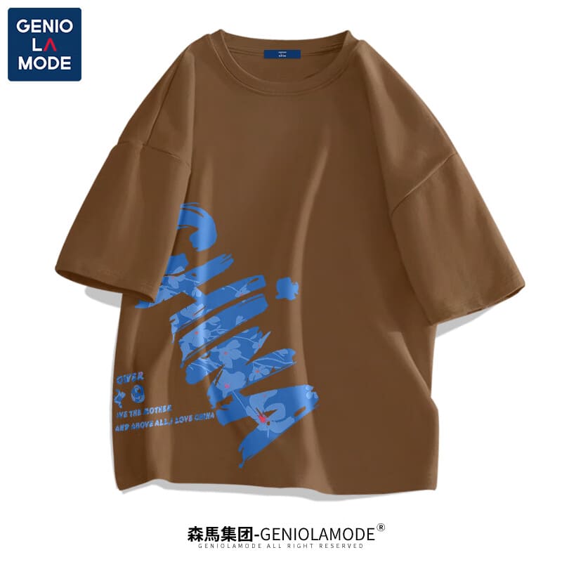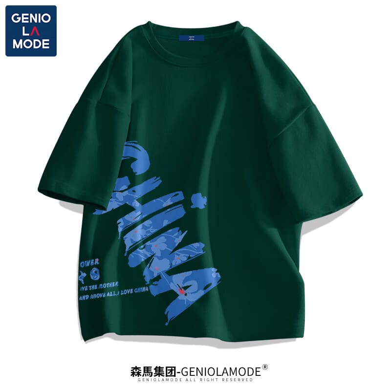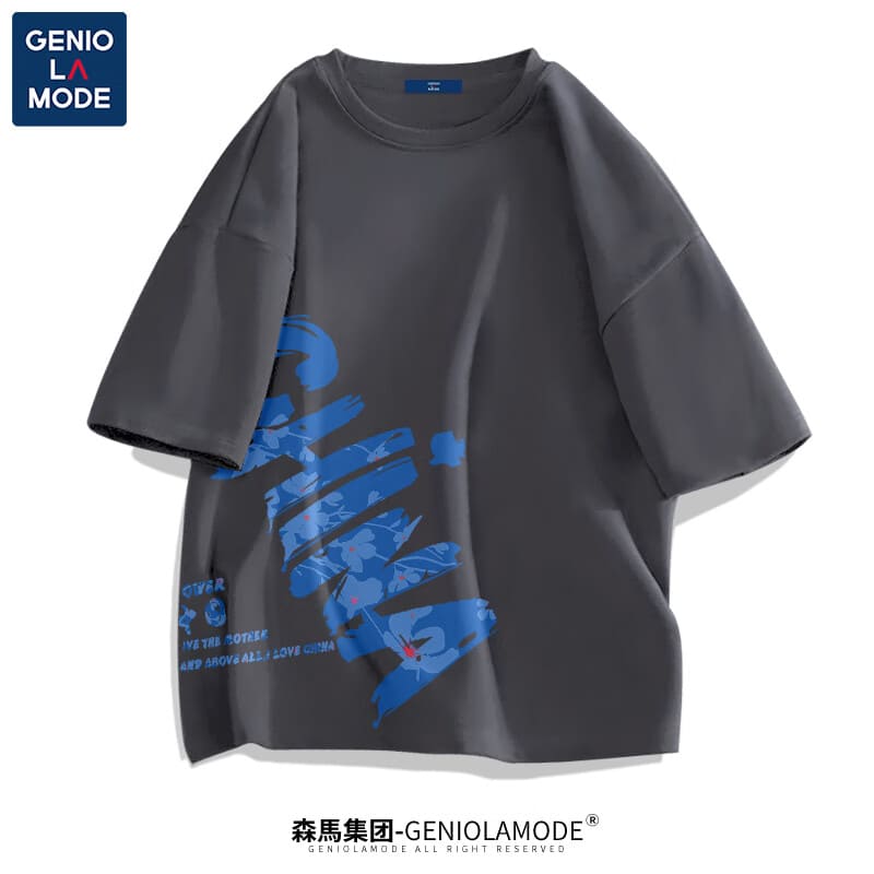 GENIOLAMODE森马集团短袖t恤男夏季纯棉国潮China大码肥仔显瘦圆领休闲体恤衫 黑色(大字母中国右下标) 2XL(155斤-175斤)