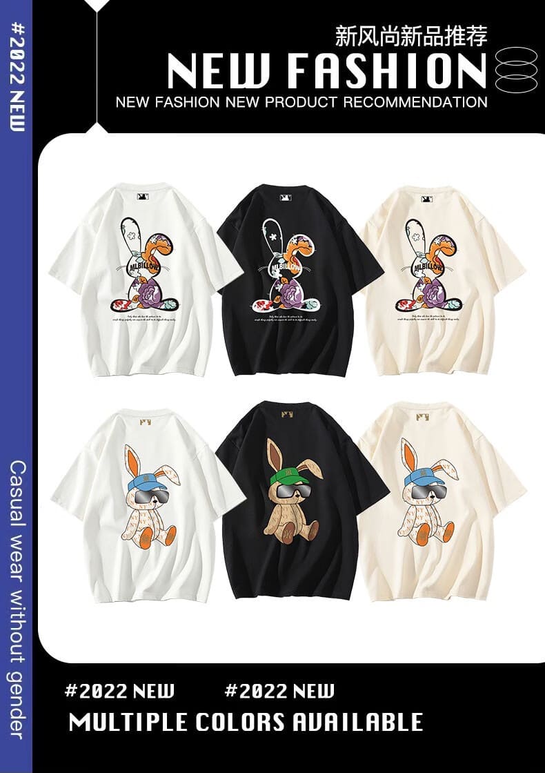 WHIM NASA潮牌联名2件装夏季短袖t恤男女情侣装宽松logo上衣服潮流半袖夏装 黑色CM204 XL(140-160斤)